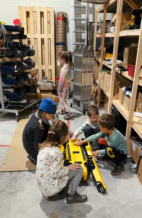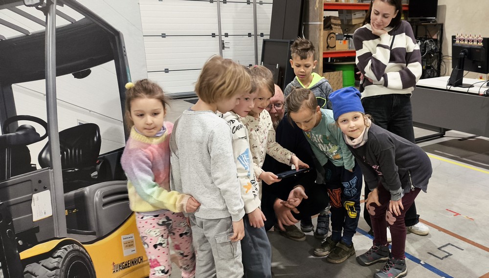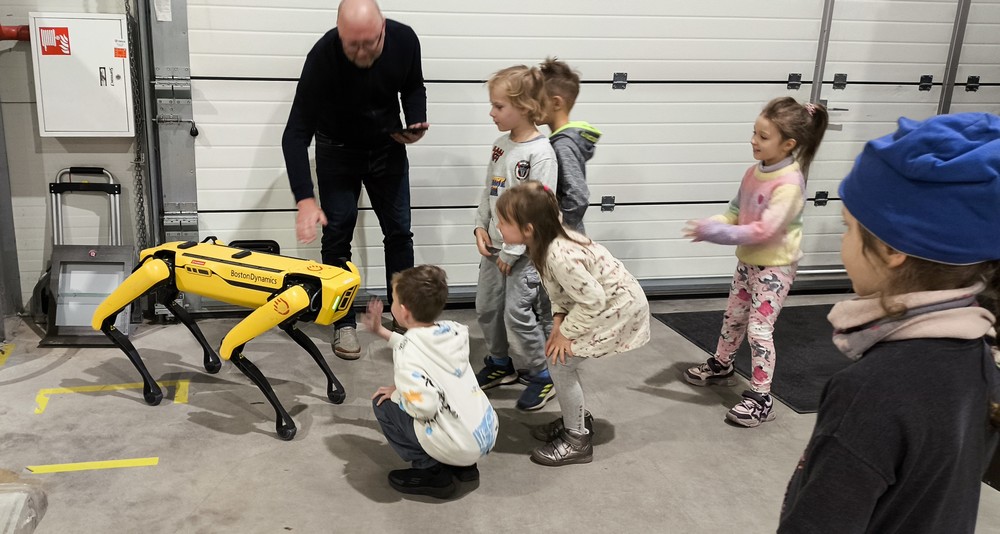 Priešmokyklinukų ekskursija į taikomosios robotikos įmonę su Emeto tėčiu